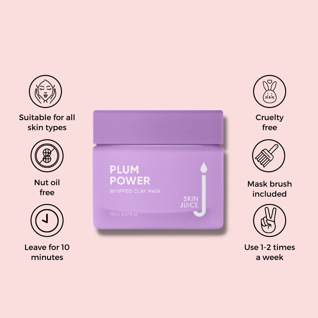 Say goodbye to congested, oily skin with the Plum Power Whipped Clay Mask from Skin Juice. This unique clay mask detoxifies and clarifies without drying or irritating, leaving your skin feeling nourished, soothed, and soft.